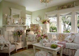Милый и уютный вариант для семейных вечеров. Светлые тона и яркие цветочные рисунки в совокупности с текстилем и обилием милых сердцу безделушек из сердца Франции.