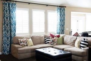 Шторы и текстиль, используемый в интерьере гостиной, являются завершающим штрихом, без которого невозможно представить уютное жилое помещение. Такие элементы могут иметь кардинально другой оттенок или подчёркивать выбранную цветовую гамму комнаты.