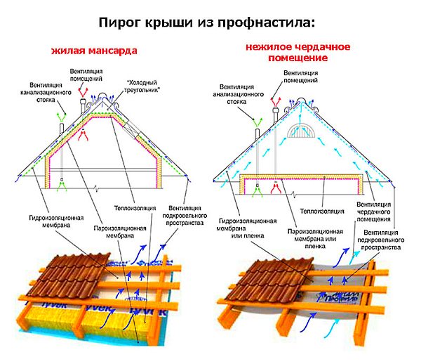 Устройство крыши из профнастила: схема