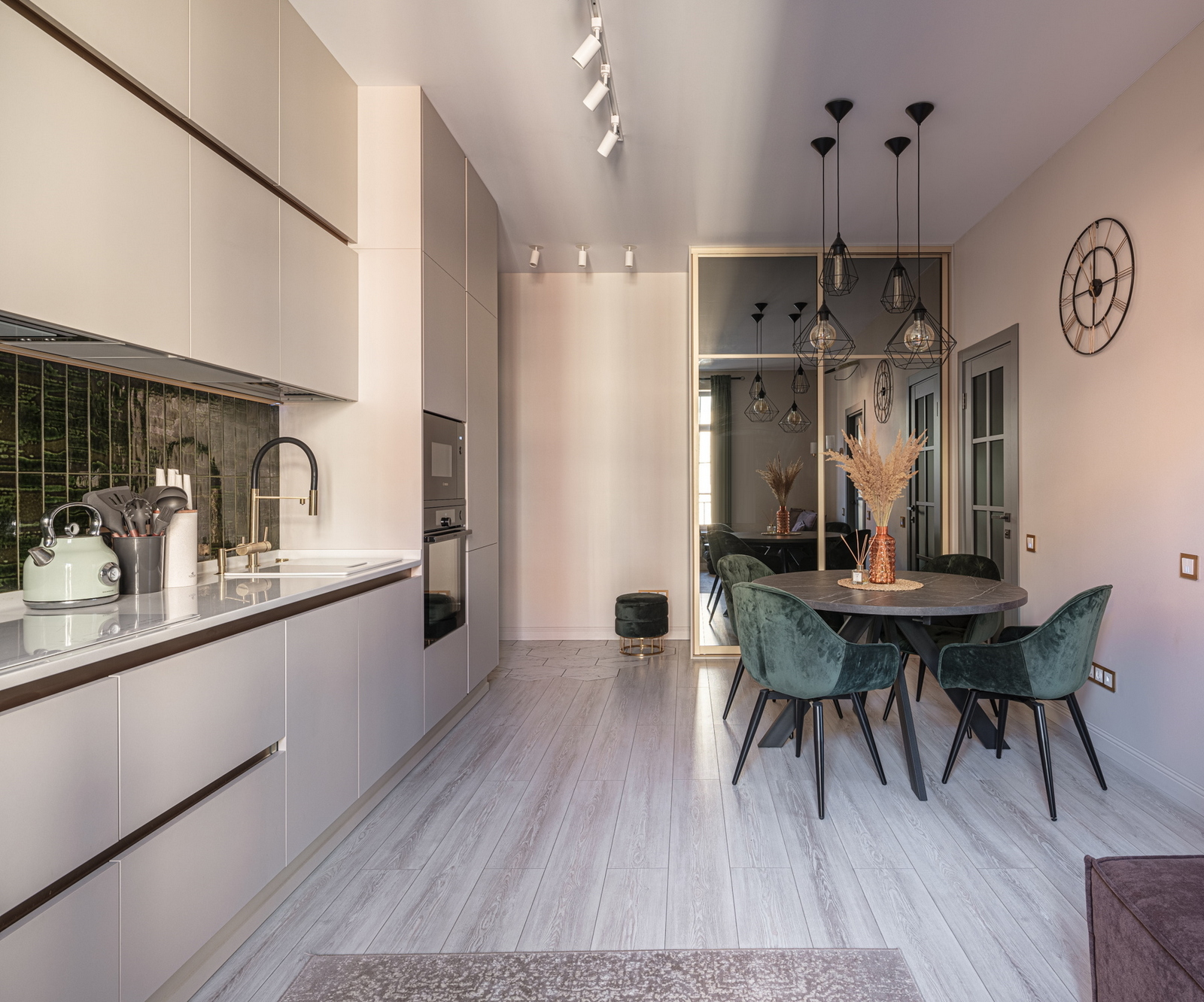Минимализм по-прежнему актуален. Простые линии, нейтральные цвета, отсутствие лишних деталей – все это создает ощущение простора и чистоты. В минималистичных кухнях особое внимание уделяется функциональности и эргономике. Встроенная техника, скрытые системы хранения и удобная организация пространства – вот ключевые элементы.