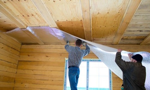 - Обустройство пароизоляции: На потолок необходимо уложить пароизоляционную пленку, чтобы предотвратить проникновение влаги изнутри помещения в утеплитель․ Пароизоляция крепится с нахлестом и проклеивается скотчем․