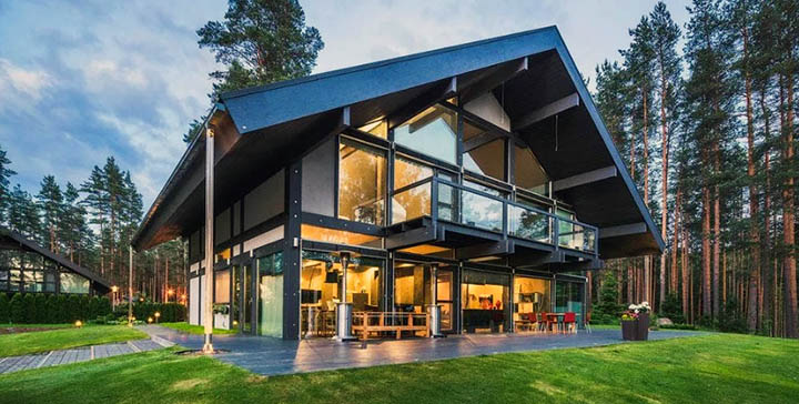 Когда возле дома есть другие здания или высокие деревья, площадь остекления нужно увеличить.