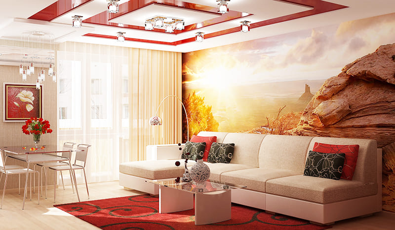 Работы по финишной отделке начинаются от потолка с постепенным продвижением вниз. Последнее, что укладывается в квартире перед выходом из неё строительной бригады – это напольное покрытие. Поэтому при закупке для этого этапа работ не стоит сразу приобретать линолеум, ковролин или иной материал подобного назначения. Лучше это оставить на самый последний момент, когда стены и потолок уже будут готовы.